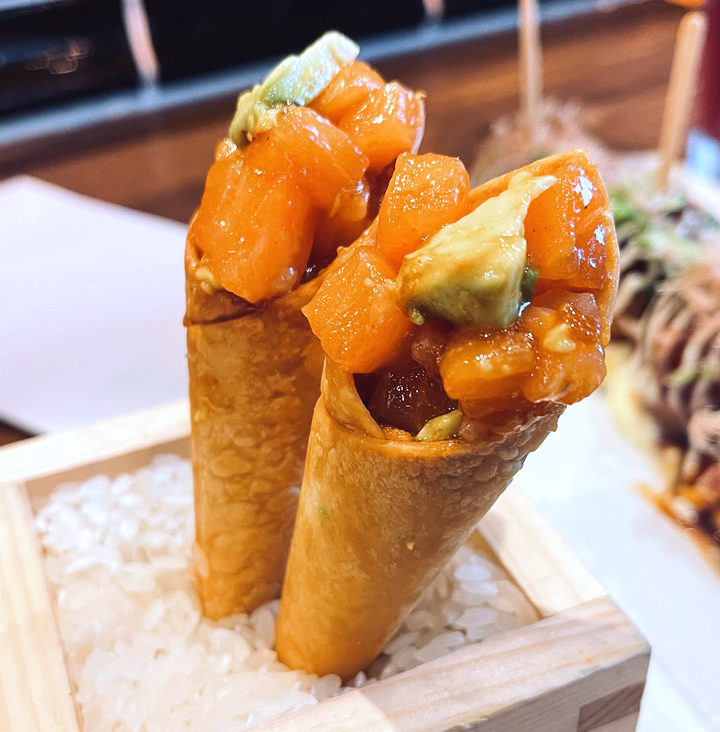 “Check out if you’re in the Duluth area and want an authentic Japanese experience. With unique food and cocktails (such as the lycheetini) you are guaranteed to try something new! They have fun starters as well, pictured here: their famous Takoyaki (battered octopus with fresh green onion) and Salmon Poke (with a crispy wonton cone). “