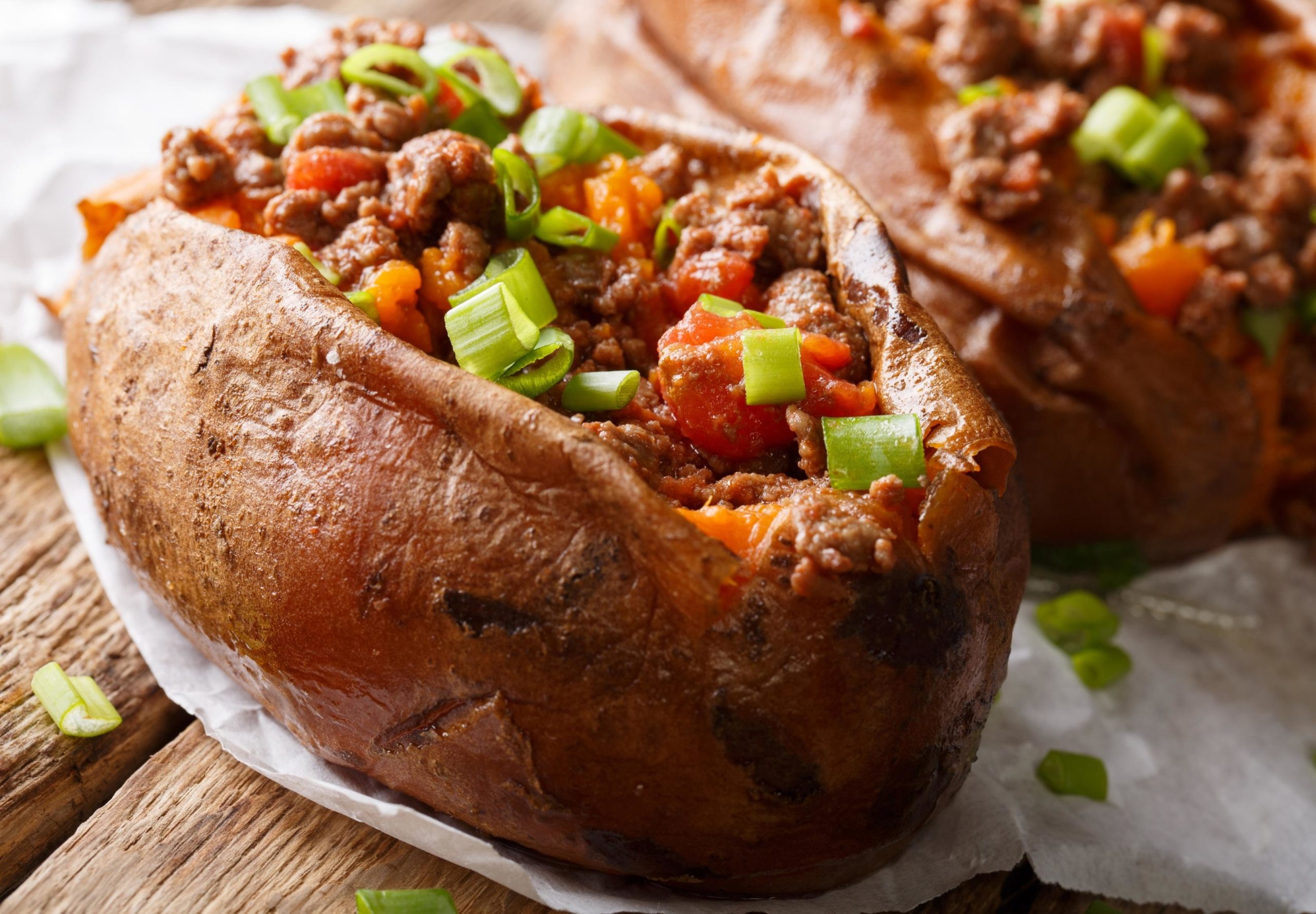 Spicy Stuffed Sweet Potatoes & Chipotle Turkey Burritos