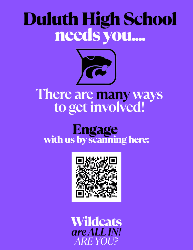If you’re looking to get involved this school year, there are a ton of opportunities to give back, whether it’s in-person or through a generous donation. Scan the QR code to fill out a form on how you’d like to contribute, whether it’s sending in snacks for PBIS student recognition, becoming a business partner, mentoring students and so much more. It’s a great way to get involved in the Duluth community and help support our students.